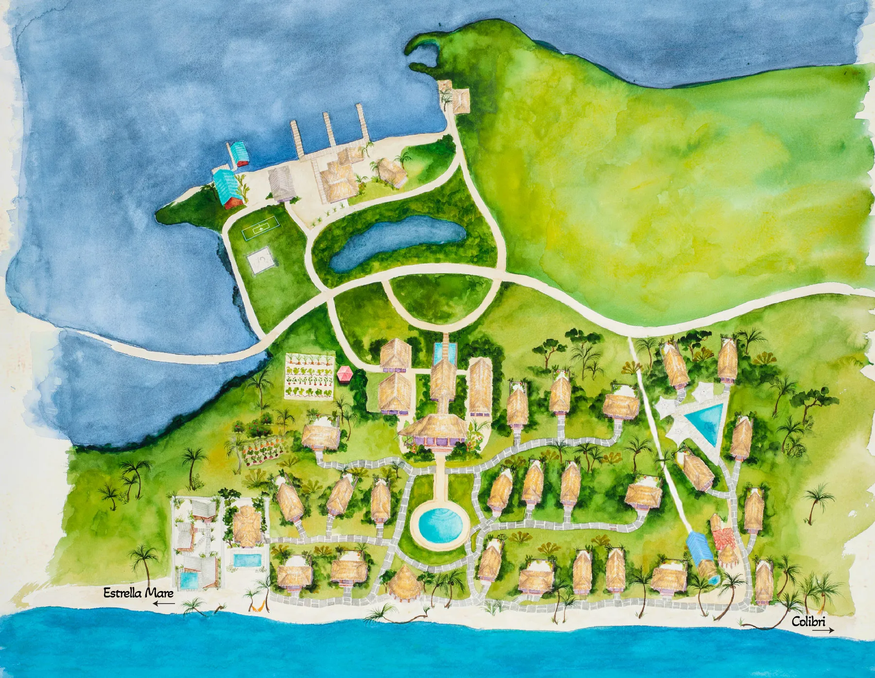 Explore the property grounds and discover the locations of our dwellings, restaurants, reception, activities, amenities, and more.