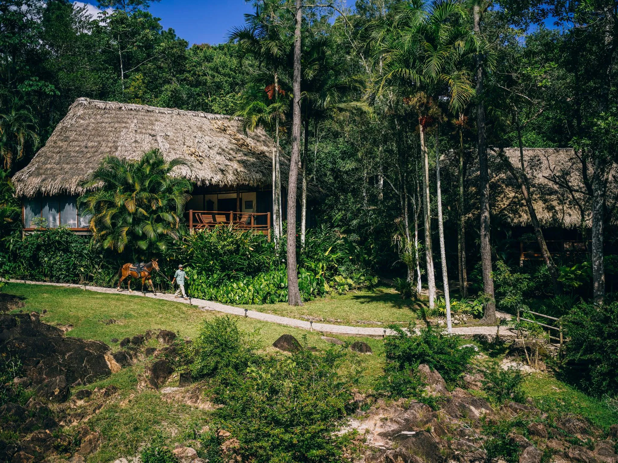 Blancaneaux Lodge is a 20-room luxury hideaway where waterfalls tumble into turquoise pools above the jungle canopy. Its remote mountain setting allows guests to explore the ancient civilization of the Maya and to return to their own thatched roof dwelling, rich with Guatemalan décor and nestled in the foliage of the Mountain Pine Ridge Reserve.