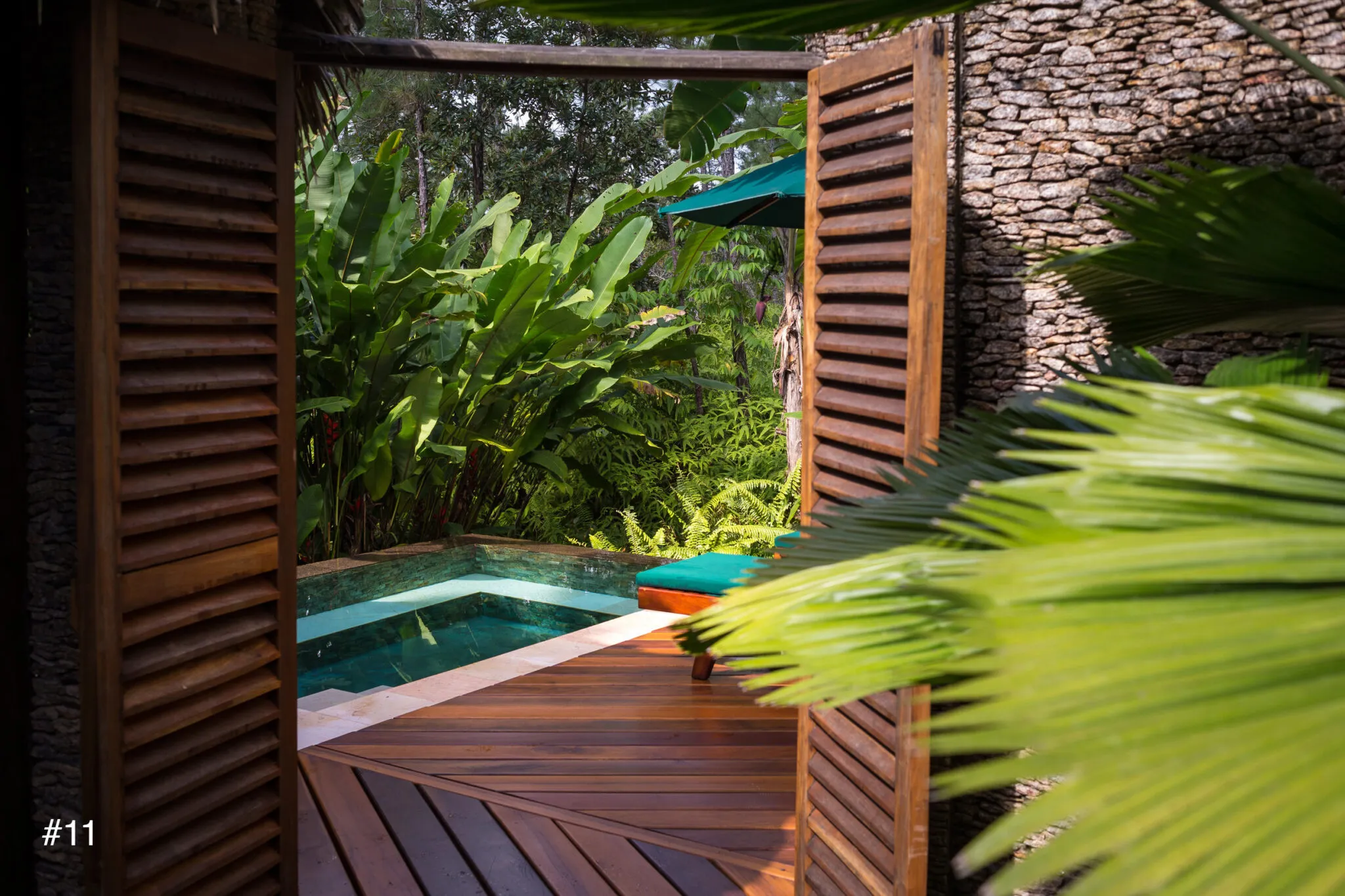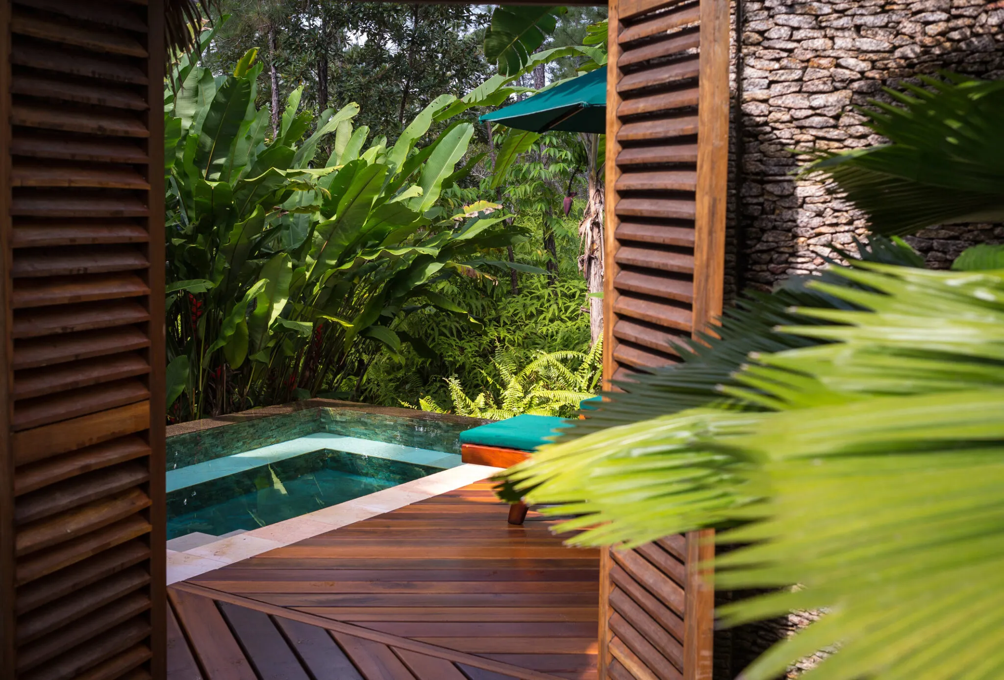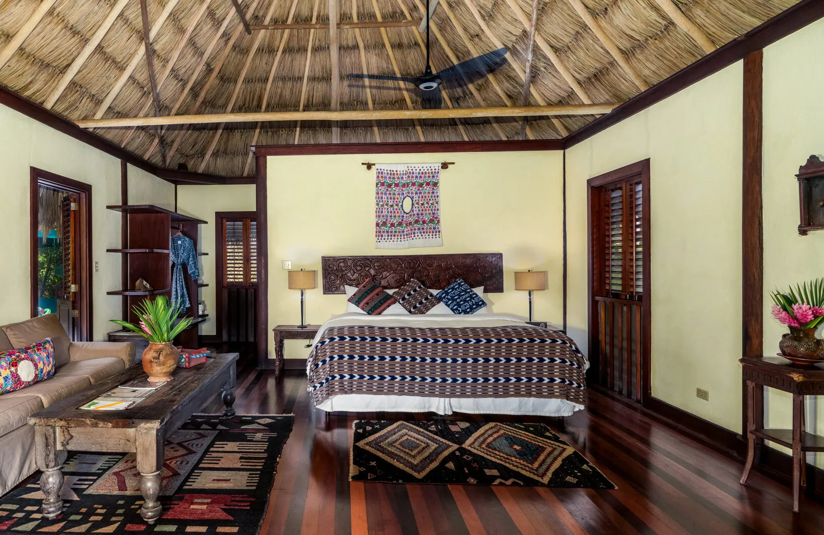 The Luxury Cabaña offers a secluded setting at the far eastern end of the property and features a private plunge pool, king-size bed, Guatemalan décor, and an additional shower outdoors. Work with our vacation planners to select the ideal dwelling for your adventure in Belize [email protected].