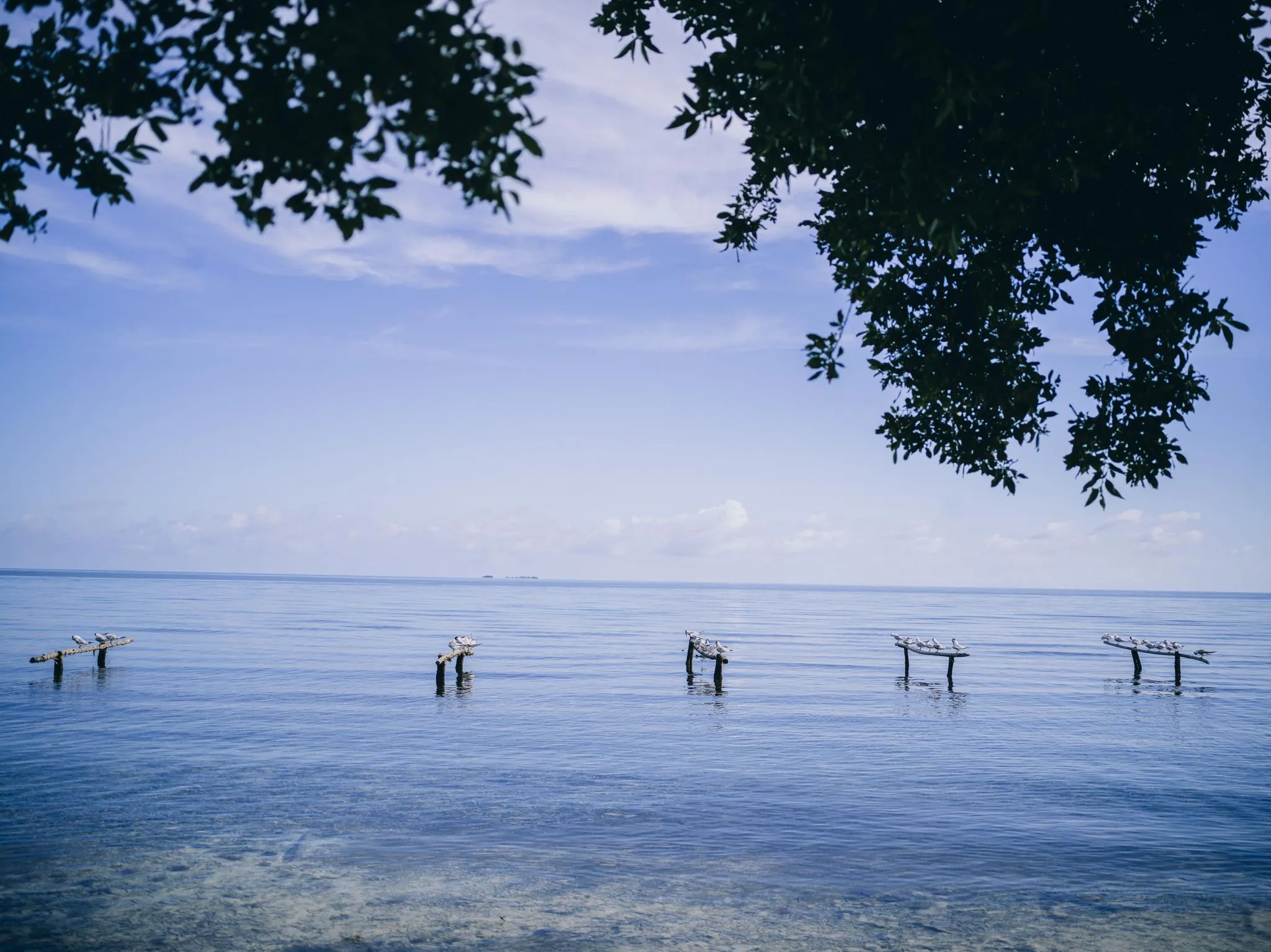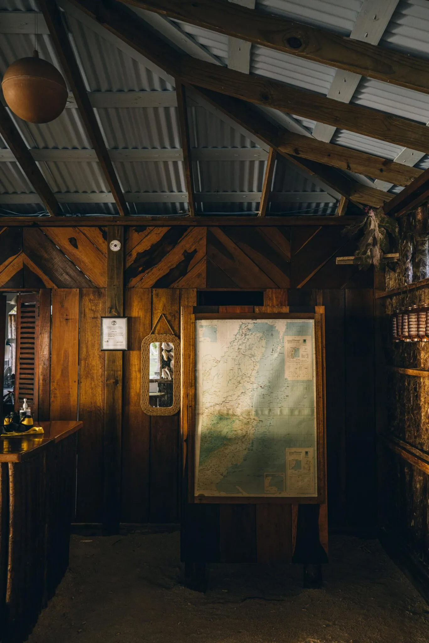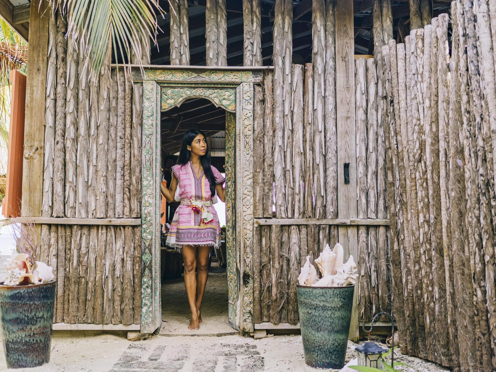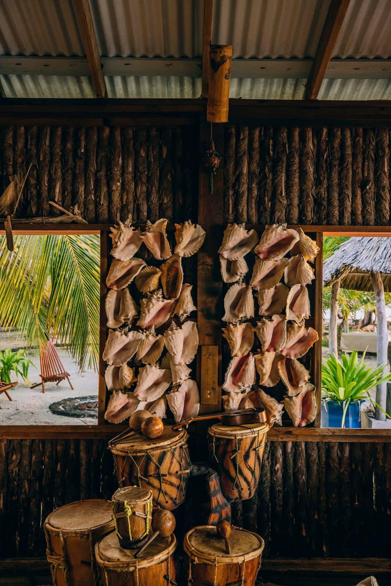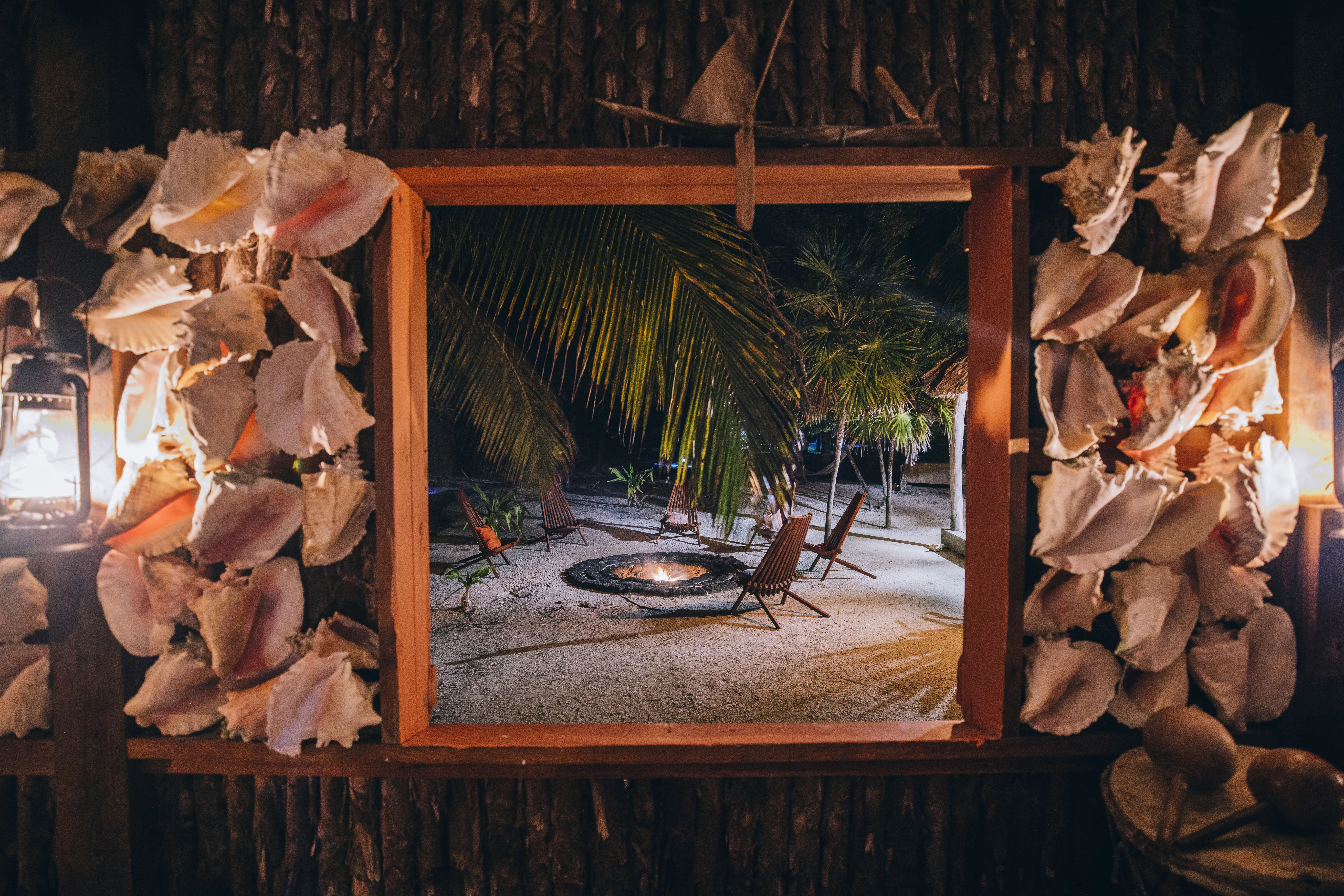 A charming, sand floor, indoor/outdoor living room space with amenities including a full bar, music system, half bathroom, kitchen, dining table, board games, dart board and more this space for celebration or family meals. Additionally there is a full-size day bed for napping or an optional additional overnight stay accommodation.