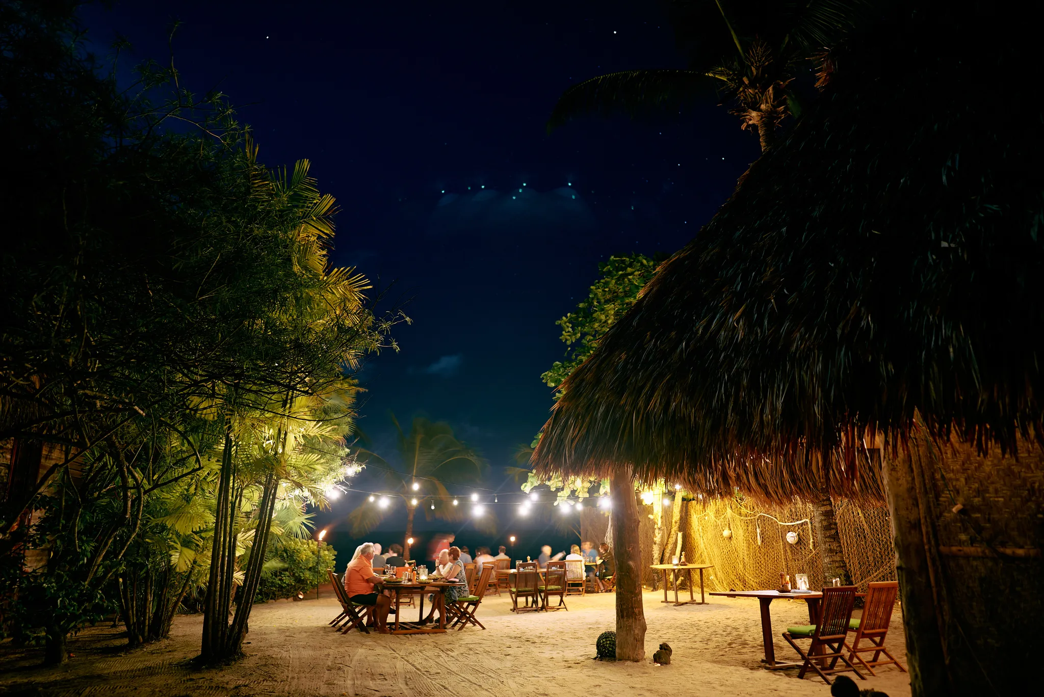 Our beachfront restaurant features fresh, charcoal-grilled seafood including lobster, jumbo shrimp, and snapper all served on woven plates accompanied by a choice of Balinese-inspired sauces and spices. Tables are set just a few feet from the sea, affording fantastic views of the offshore cayes (tiny islands) and starry night sky. The sandy-floored bar and lounge also offers an excellent selection of Belize-brewed beer, wine, and cocktails.