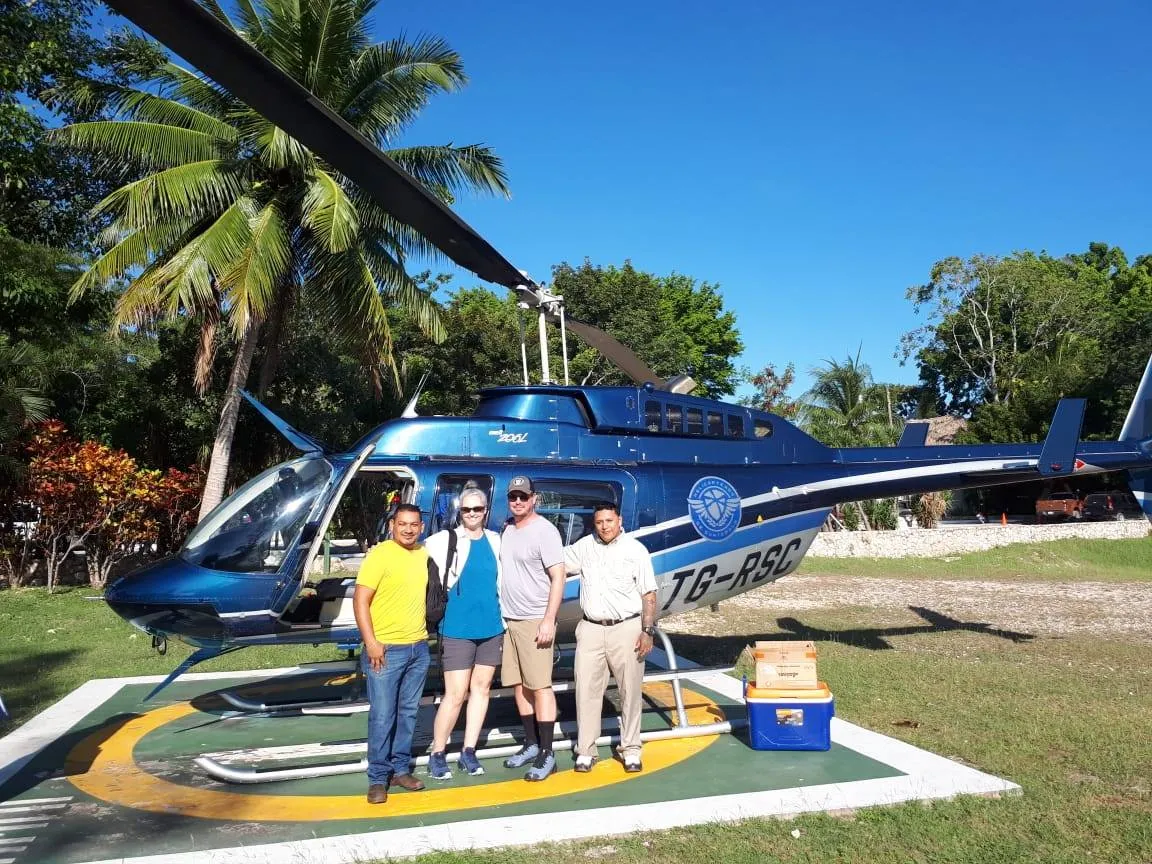 Time: Departs La Lancha at 7:45am, for a 45 min drive to Flores International Airport. The helicopter departs at 9am from the helipad at Flores Airport. Guests return to La Lancha around 4:30pm
