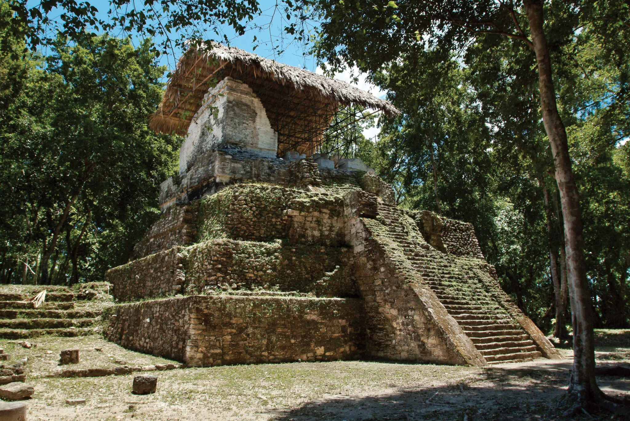 The important ceremonial center of Yaxhá is located between the two lakes of Yaxhá and Sacnab. Upon arrival we board a “Lancha” (motorized canoe) to visit Topoxte, a site with a long occupational history that became a Late Classic outpost of Yaxhá before being abandoned by 900 AD. The site was later reoccupied by the Maya K’owoj in AD 1350 becoming the largest Post Classic Maya site in the Petén. Topoxte was finally abandoned in AD1450. Formerly sited on an island the ruins are now located on a peninsula due to lower water levels. After lunch, we will explore Yaxhá, an important Maya site and recent location of the US ‘Survivor’ TV series. Yaxhá has over 500 structures, including 40 stelae, 2 ball courts and 9 temple pyramids. Structures at Yaxhá show the influence of Teotihuacan and Plaza ‘C’ has the only twin-pyramid complex outside of Tikal which gives an insight into Yaxhá’s political allegiances. We will end the tour atop temple 216 to view the jungle and lakes of Yaxhá and Sacnab.