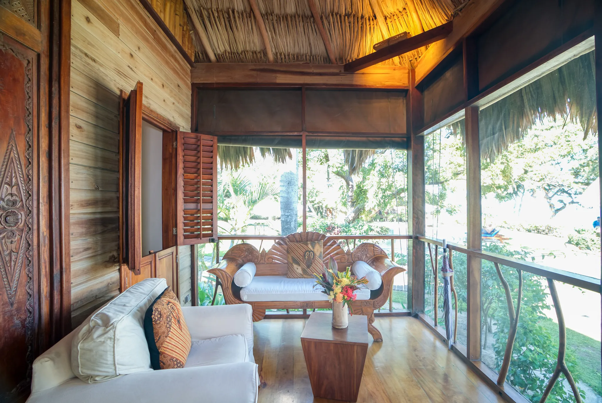 Nestled in our lush gardens and a few paces from the Caribbean Sea, each Garden Cottage has air-conditioning, a private screened porch, spacious bathroom with a Japanese bath, and a private walled garden with an outdoor shower. All rooms feature Balinese hand-carved doors and décor, and ceiling fans. If you prefer to be closer to water, be sure to check out our Belize luxury villas and Poolside Seaview Cottages at Turtle Inn, offering partial views of the Caribbean Sea.