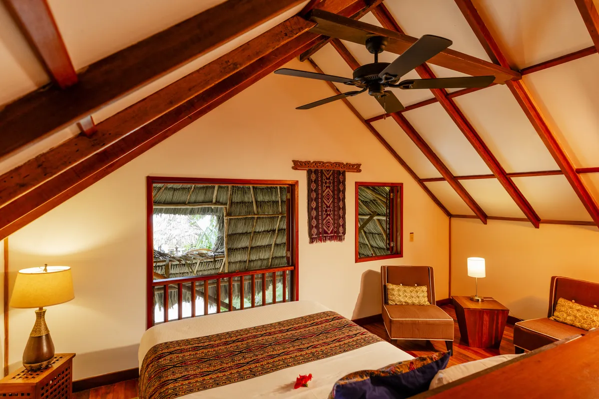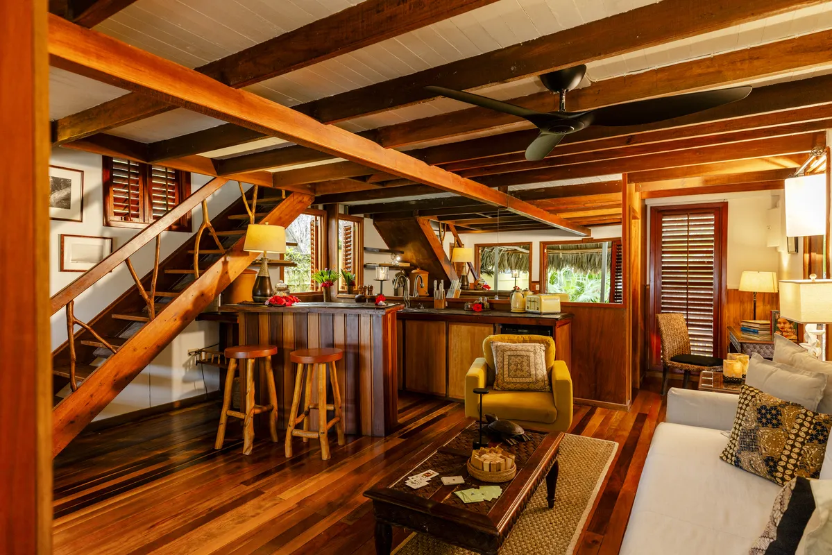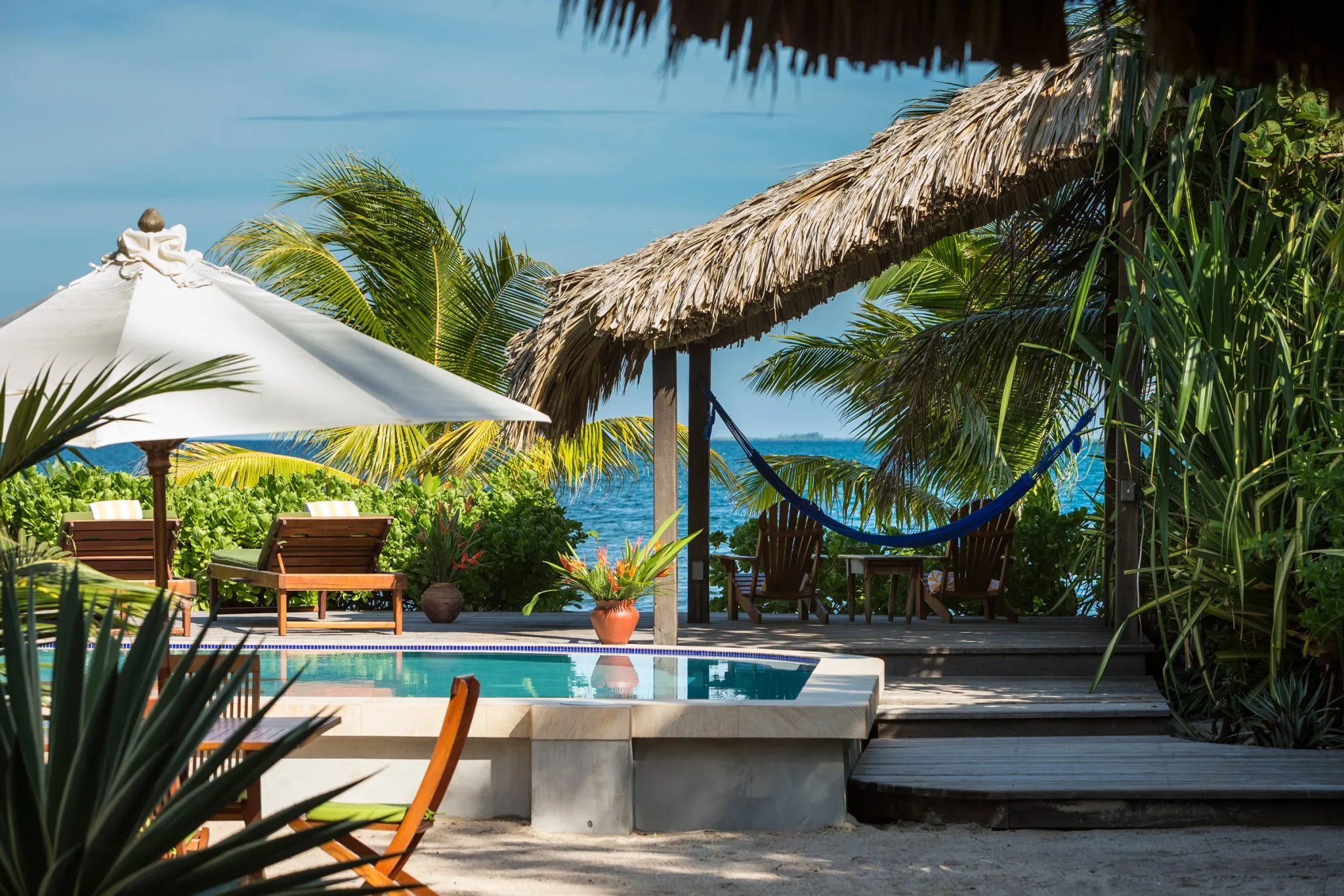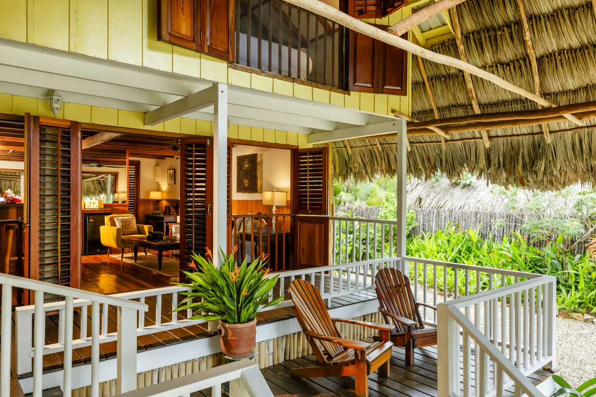 Feel as if you are staying in your own private seafront home, fully equipped with a kitchen, living room, full bathroom on the main floor, and two air-conditioned bedrooms. Each bedroom has a queen-size bed, and there’s a shared bathroom on the second floor. The Stella’s Starfish Cottage at our luxury beach hideaway in Belize is ideal for families or two couples traveling together. The cottage also features a private deck and swimming pool. Special additions can be added such as a private butler to attend to your every need, a golf cart for drives into Placencia, or even a private yoga class on your deck.