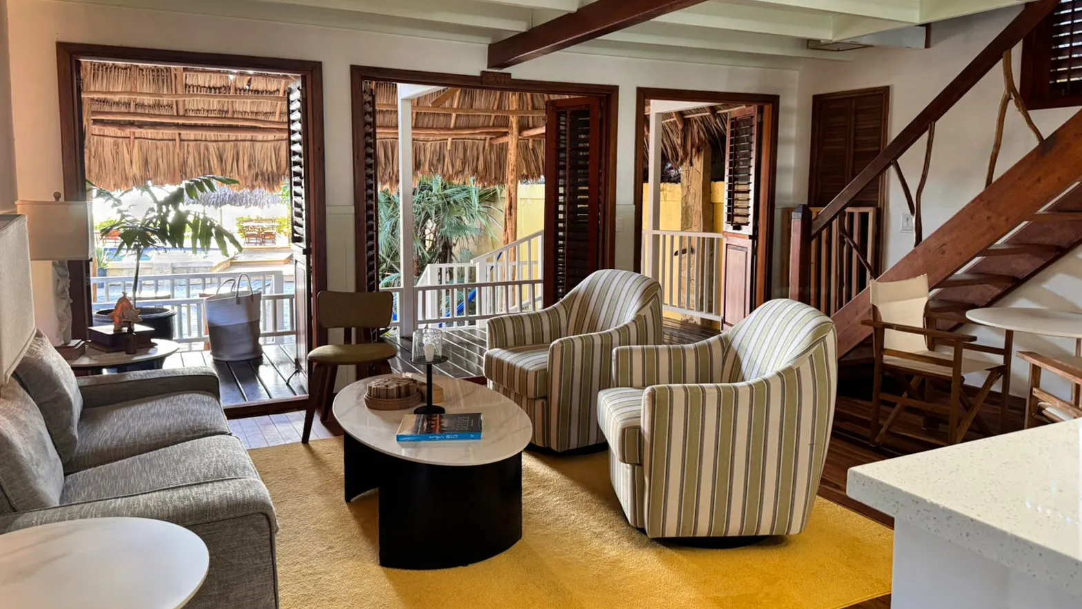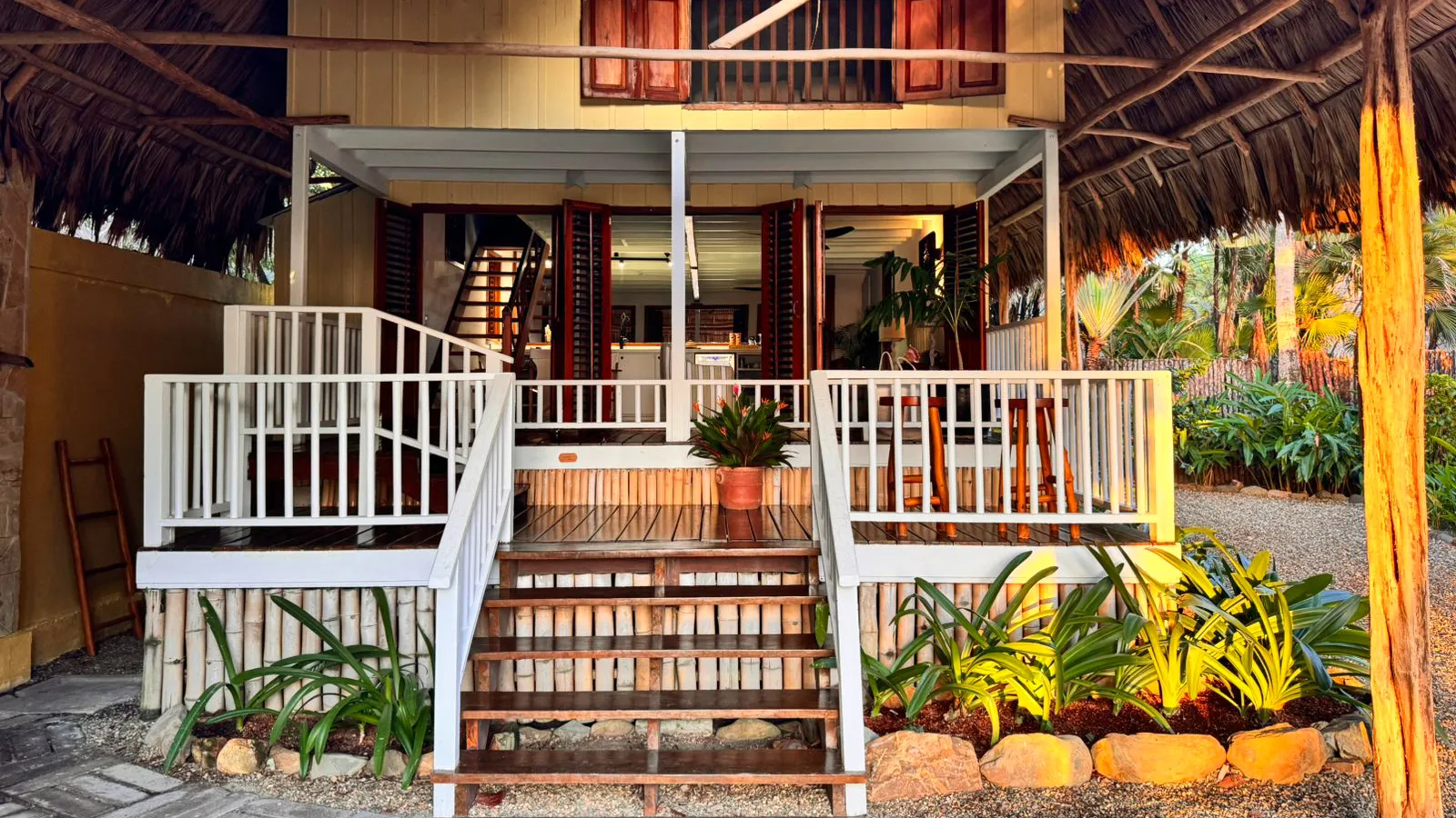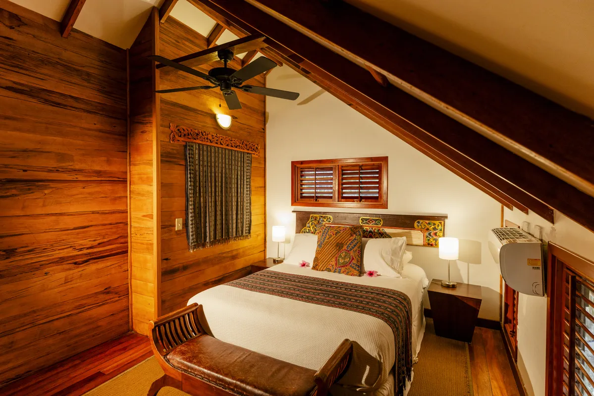 Feel as if you are staying in your own private seafront home, fully equipped with a kitchen, living room, full bathroom on the main floor, and two air-conditioned bedrooms. Each bedroom has a queen-size bed, and there’s a shared bathroom on the second floor. The Stella’s Starfish Cottage at our luxury beach hideaway in Belize is ideal for families or two couples traveling together. The cottage also features a private deck and swimming pool. Special additions can be added such as a private butler to attend to your every need, a golf cart for drives into Placencia, or even a private yoga class on your deck.